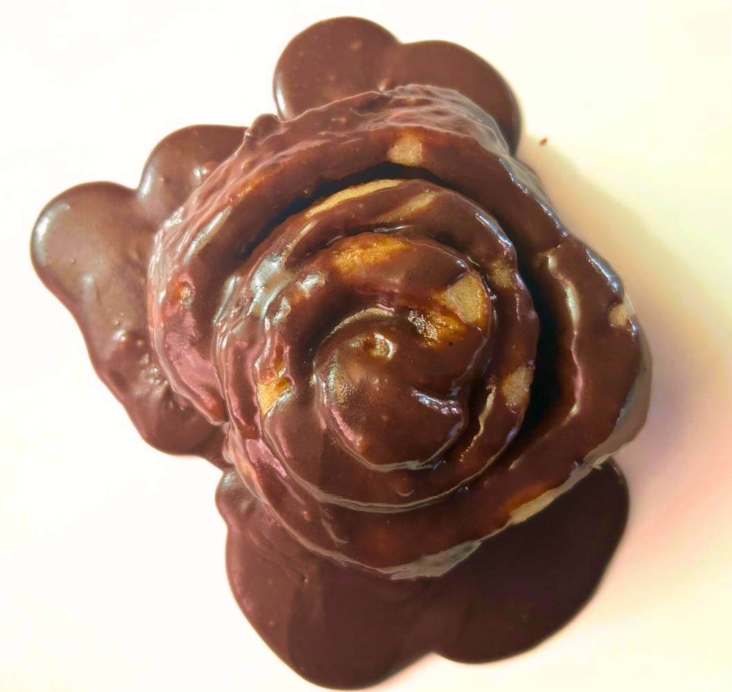 Baker Town Cinn-Amazing Rolls w/ Chocolate Icing - Pillowy soft rolls, gooey cinnamon sugar filling and Chocolate Icing! A hint of brewed coffee in the icing just to make the really good cocoa powder taste more chocolate-y. The icing is Chocolate, not 'mocha'. YUM! Remember. nuts or raisins upon request at no extra charge!